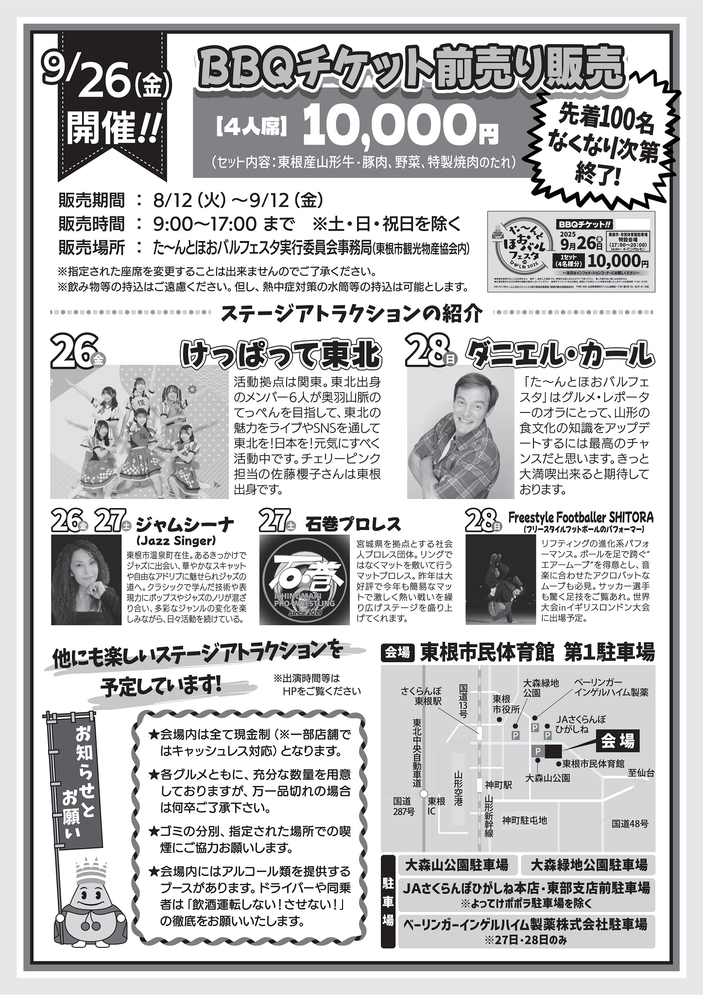 【終了しました】《2025.9.26~28》た~んとほおバルフェスタ in ひがしね2025