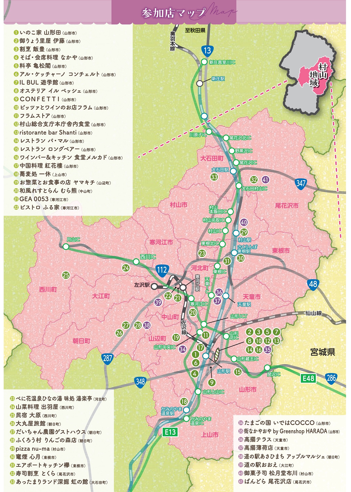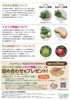 ・村山地域の協賛店41店において、旬の「やまがた野菜」「イタリア野菜」「村山地域産フルーツ」を