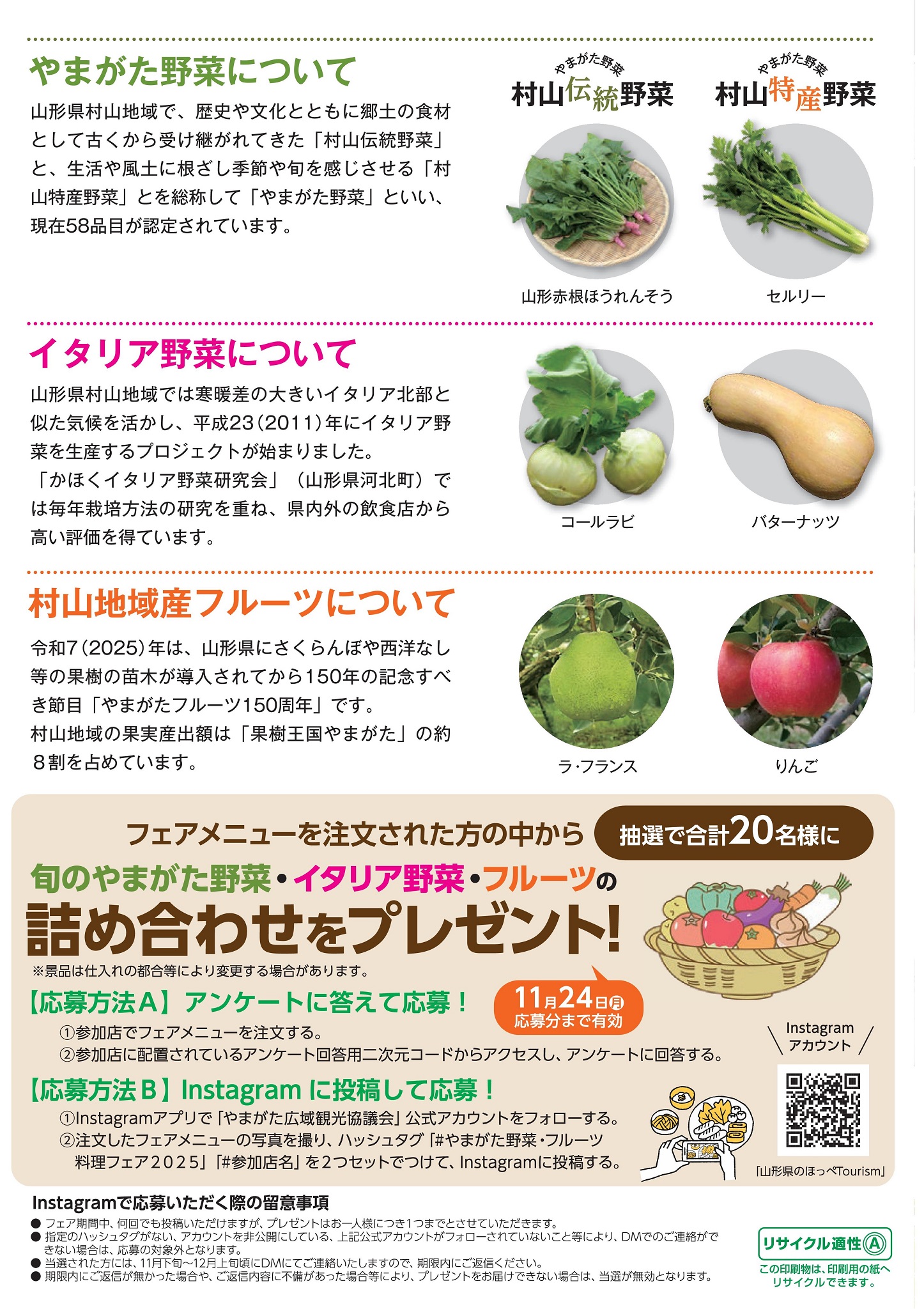 《2025.11.1-11.24》やまがた野菜・フルーツ 料理フェア2025 開催!