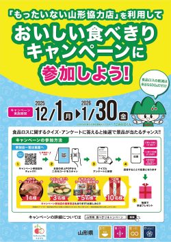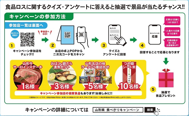 抽選で景品を進呈する「もったいない山形協力店」おいしい食べきりキャンペーンを実施します🎁