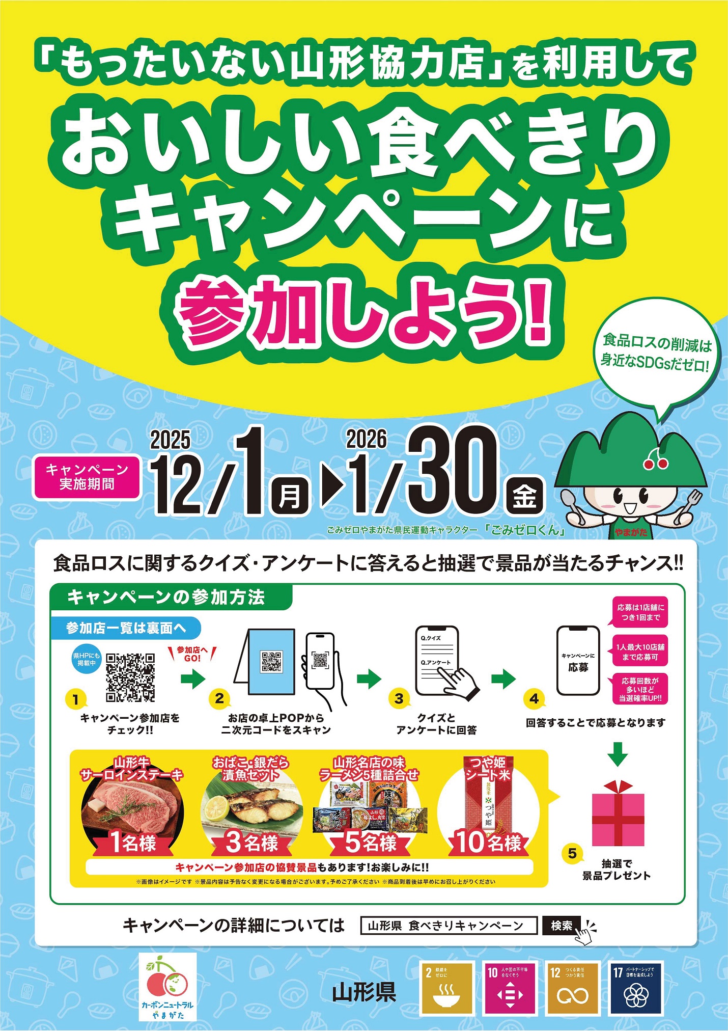 キャンペーンの詳細は、「山形県 食べきりキャンペーン」で検索