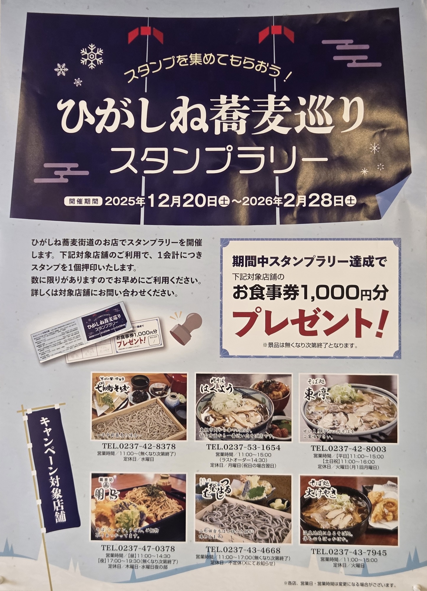 《2025.12.20~2.28》果樹王国ひがしね蕎麦街道 ひがしね蕎麦巡りスタンプラリー開催中!