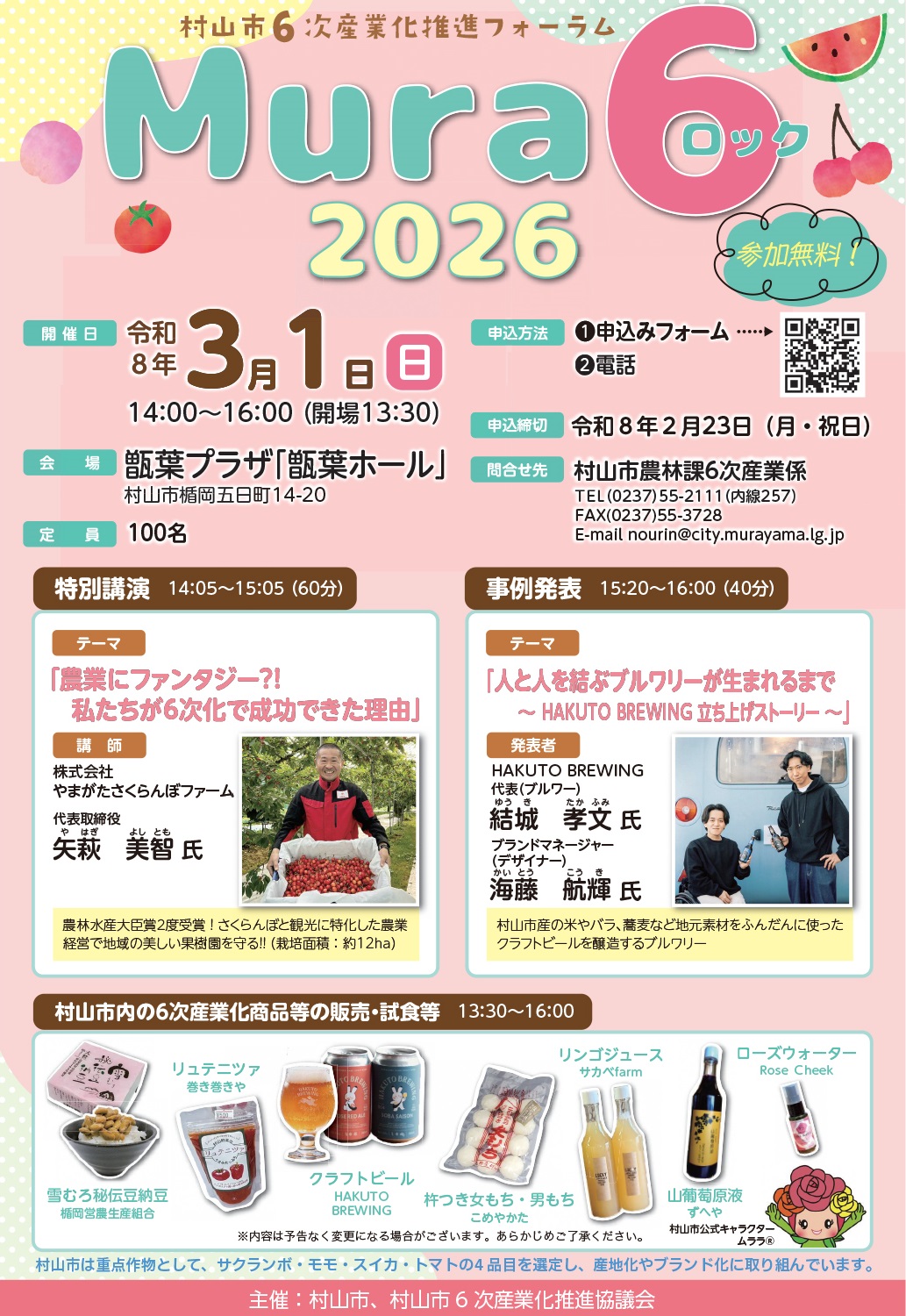 《2026.3.1》村山市6次産業化推進フォーラム「Mura6 2026」開催!